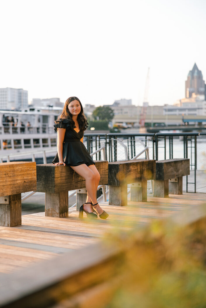 Golden hour senior photography downtown hits different. We spent the evening exploring Milwaukee’s streets for this senior portrait session, chasing that perfect warm light as it danced between buildings. This high school senior photoshoot was all about capturing authentic moments – the kind of senior photos that show who you really are, not just how you look.